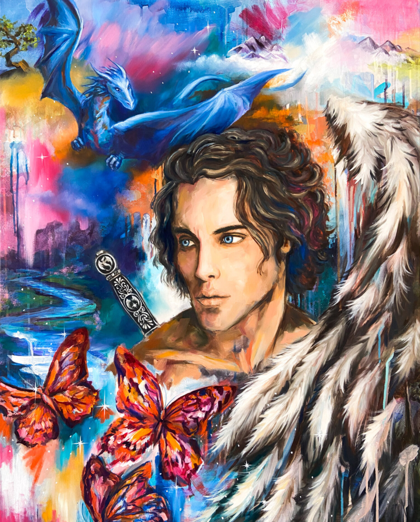 Se presentan aquí como mensajeras aladas junto con el dragón y el ángel: los 3 seres son alados y nos envían mensajes. Las mariposas aparecen en este cuadro porque son la única criatura visible en nuestro plano, pero son tan mágicas como los ángeles y los dragones.