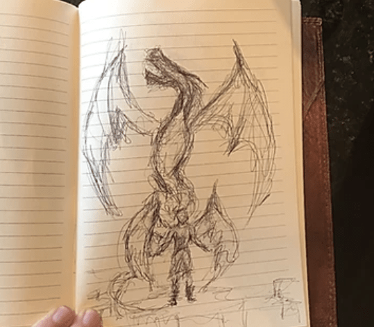 Esta idea se me ocurrió meditando mientras escuchaba música. Me vino una imagen a la cabeza y cogí el cuaderno de mi marido, ¡era la única superficie que había!